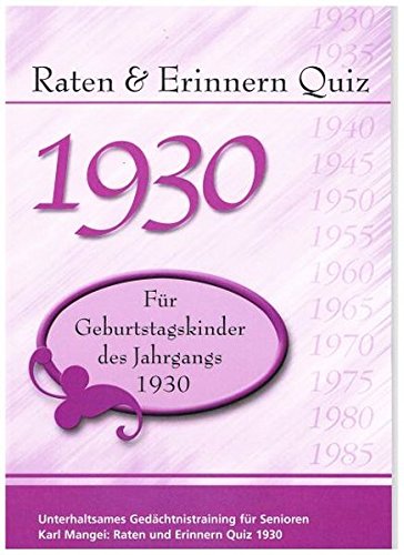 Buchtitel : Raten und Erinnern Quiz 1930 - Für Geburtstagskinder des Jahrgangs 1930: Unterhaltsames Gedächtnis